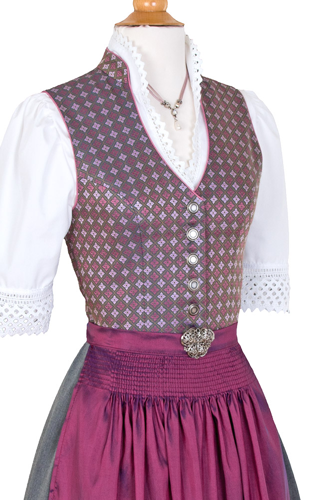 Bitte beachten Sie, dass Dirndlkleider auf Figur gearbeitet sind und eng sitzen müssen. Gegenüber modischer Kleidung fallen sie daher eher klein aus. Meist benötigen Sie daher eine Kleidergröße größer. Bitte beachten Sie deshalb unsere Maßtabelle. Die Seitennähte unserer Modelle sind so versäubert, dass Sie mit wenigen Handgriffen um bis zu eine Konfektionsgröße enger oder weiter gemacht werden können. Bei Fragen beraten wir Sie gerne telefonisch. Im Preis enthalten sind Dirndl und Schürze.