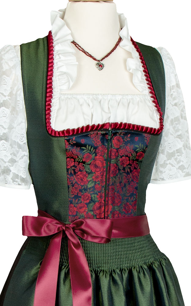 Bitte beachten Sie, dass Dirndlkleider auf Figur gearbeitet sind und eng sitzen müssen. Gegenüber modischer Kleidung fallen sie daher eher klein aus. Bitte beachten Sie deshalb unsere Maßtabelle.