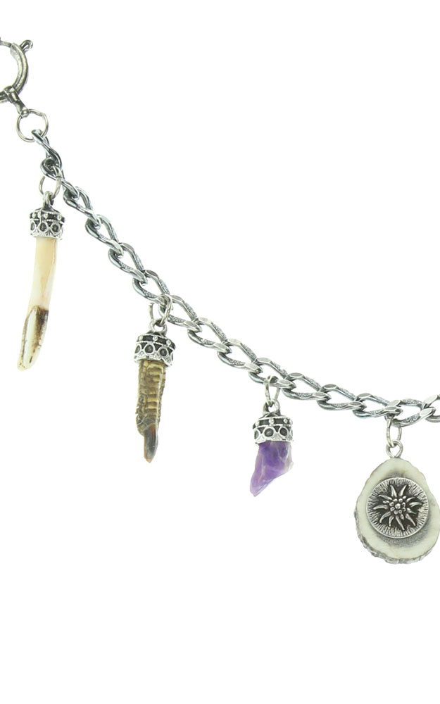 Dieser Charivari aus echt versilbertem Messing ist wirklich etwas Besonderes! Bereits die Kette ist durch die filigran gearbeiteten Verzierungen an jedem einzelnen Kettenglied ein Hingucker.