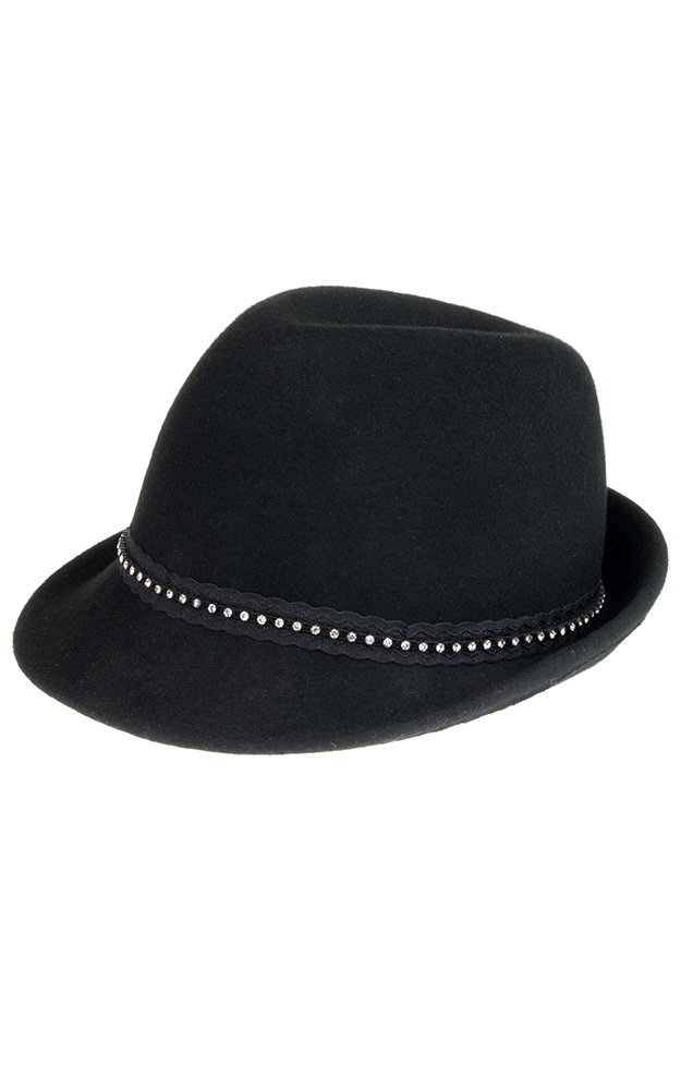 Damenhut 243B, schwarz Hirsch Strass