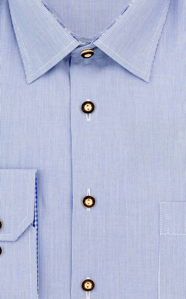 - Taillierter Schnitt - Slim-fit- Liegekragen- Farblich abgesetzte Innenseiten von Ärmel-Manschetten- Langarm- Knöpfe in Hirschhornoptik - durchgeknöpft- Praktische Brusttasche