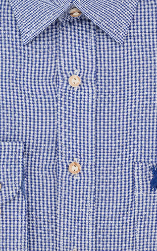 - Normaler Schnitt- Liegekragen- Farblich abgesetzte Innenseiten von Ärmel-Manschetten- Langarm- Knöpfe in Hirschhornoptik - durchgeknöpft- Praktische Brusttasche