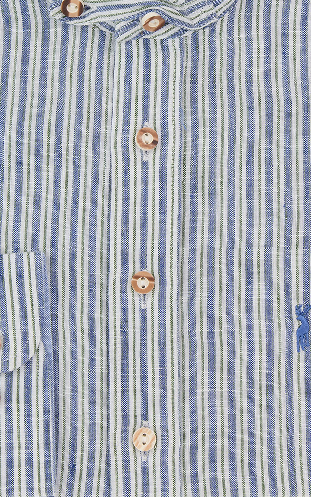 - Normaler Schnitt- Stehkragen- Langarm- Knöpfe in Hirschhornoptik - durchgeknöpft- jeweils 6 Biesen links und rechts neben der Knopfleiste