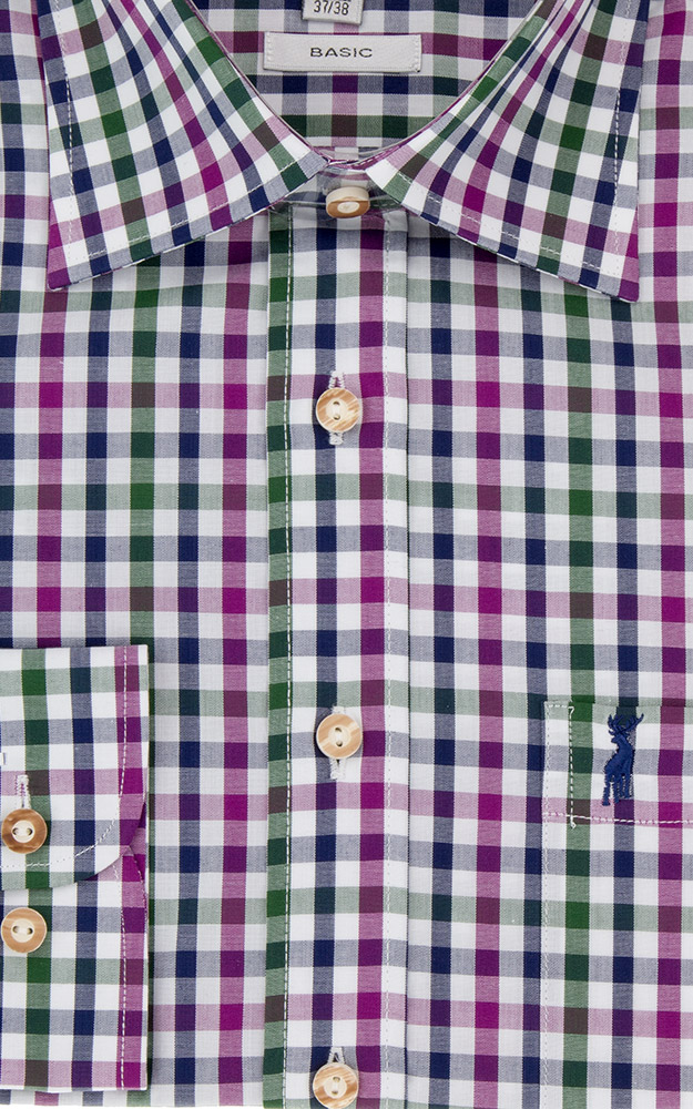 - Normaler Schnitt- Liegekragen- Langarm- Knöpfe in Hornoptik - durchgeknöpft- Brusttasche- Dezente Hirschstickerei auf der Brusttasche