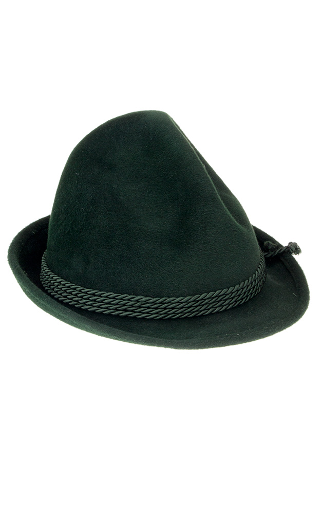 Hochwertiger "Spezi"-Hut aus Velours-Samt in klassischer Form mit den typischen drei Griffstellen. Der Rand ist schmal gehalten und zur Rückseite hochgehend. Garniert wird der Hut mit einer Doppelkordel, das Hutband ist aus Leder gefertigt.Die Hutgröße entspricht Ihrem Kopfumfang.