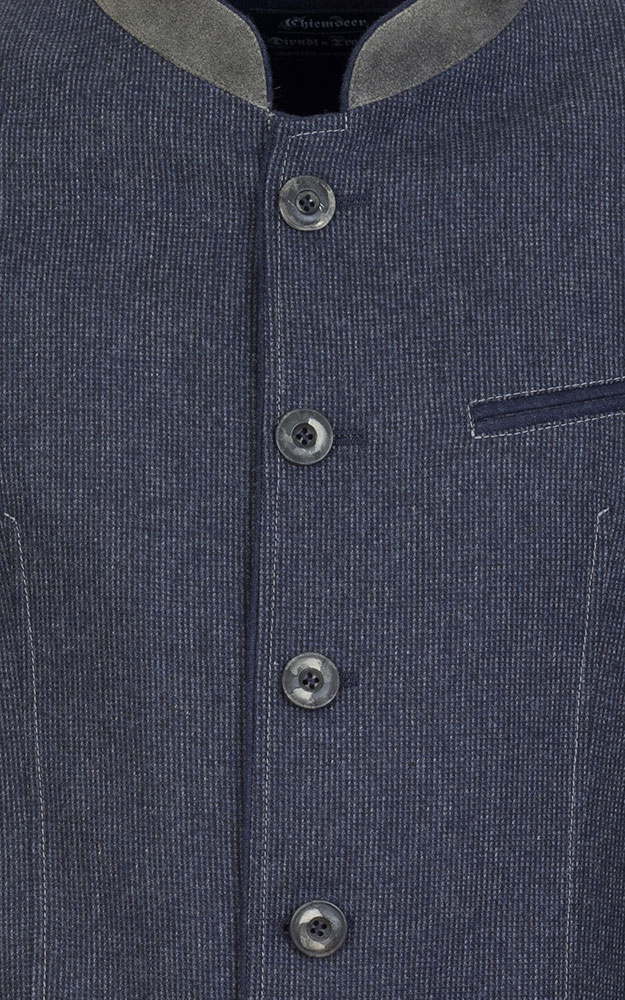 Leicht tailliert geschnittener Trachtenjanker mit 2 Innentaschen und Rückenspange. Der Janker ist mit Halbfutter ausstaffiert. Das Taft-Innenfutter ist in schwarz/weißem Minikaro gehalten.