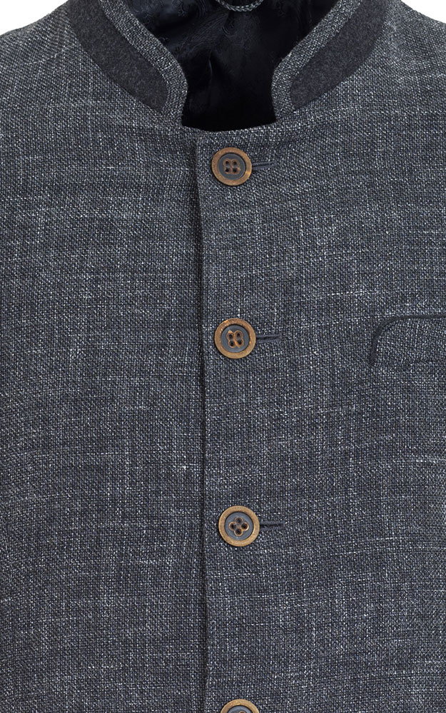 Leicht tailliert geschnittener Trachtenjanker mit 2 Innentaschen. Das Taft-Halbfutter ist in leicht schimmerndem, schwarzen Paisleymuster gehalten.