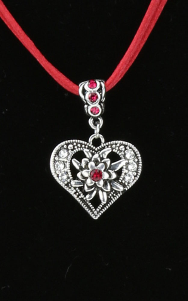 Trachten-Collier mit Samtband. Der Anhänger ist mit funkelnden Glas-Kristallen besetzt.