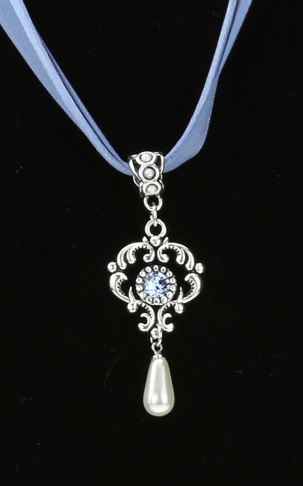 Trachten-Collier mit Samtbändern. Der Anhänger ist mit funkelnden Glas-Kristallen besetzt.