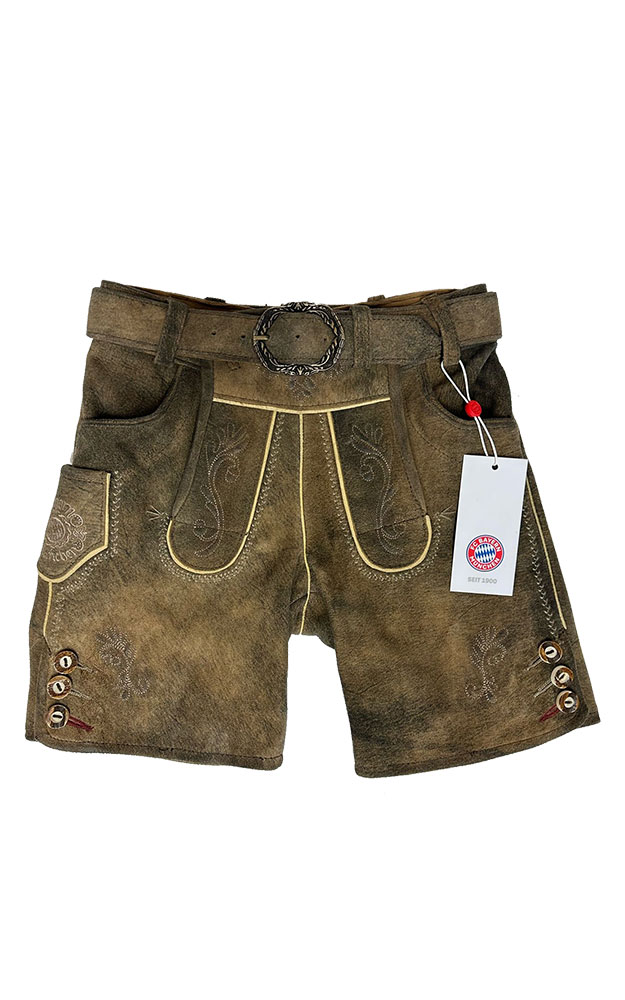 Kinder-Lederhose Ebias mit Träger/Gürtel, braun - FC Bayern