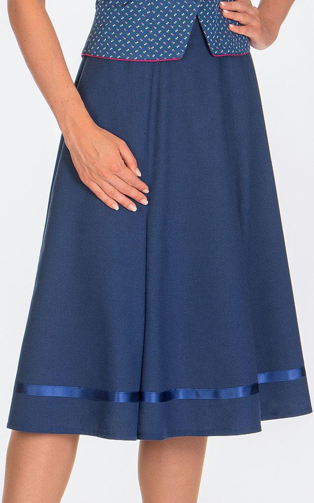 Schlankfallender, leicht glockig geschnittener 6-Bahnen-Rock mit Satinband-Zier.Weitere abgebildete Artikel sind nicht im Preis enthalten.