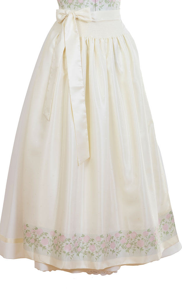 Schürze mit bildschöner Rosenbordüre und Satin-Schürzenbändern.
