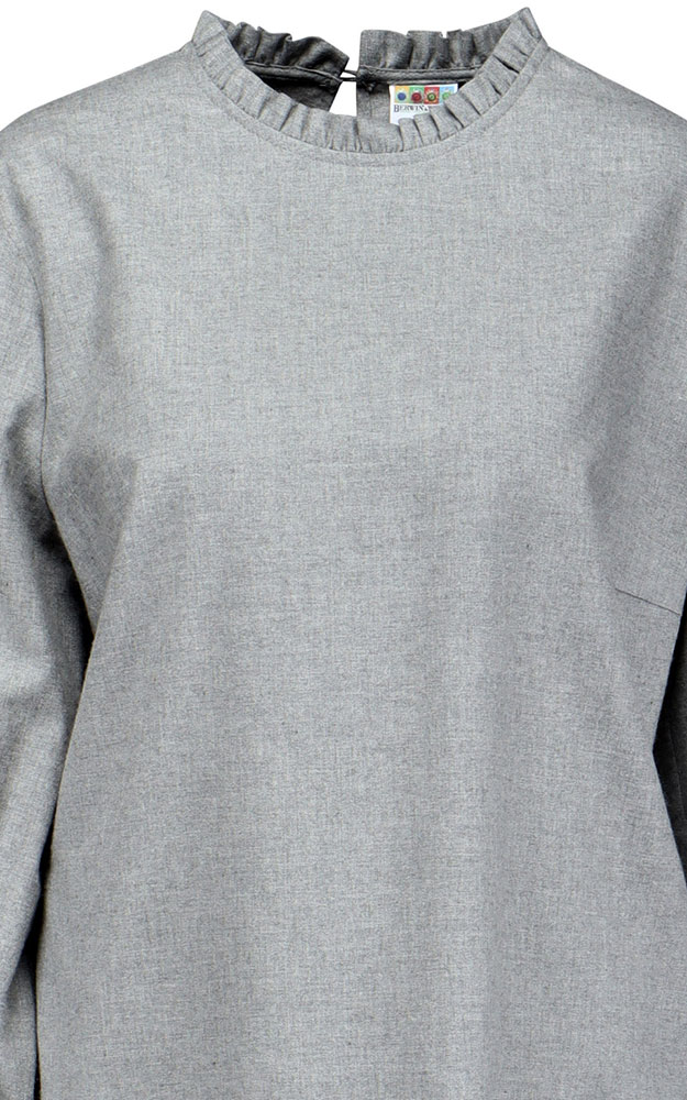 Langarm-Bluse aus super weicher Baumwoll-Flanell-Qualität, Rüsche im Ausschnitt, Armabschluss mit breitem Gummizug. Hinten Schlitz mit Knopf.