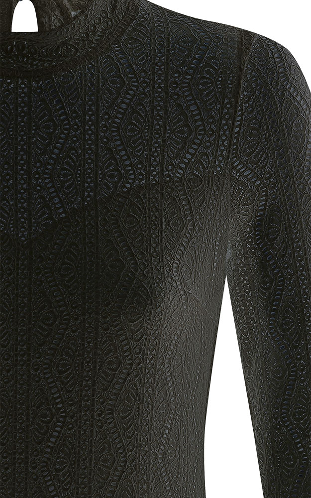 Angesagter Spitzenbody mit kleinem Kragen zum Schlupfen mit Knopf hinten.
