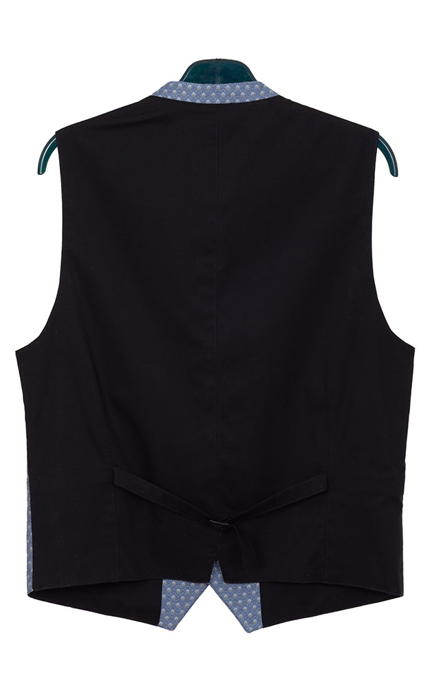 - Metallknöpfe- Schwarzes Innenfutter- Stretch-Stoffrücken in Schwarz mit Spange