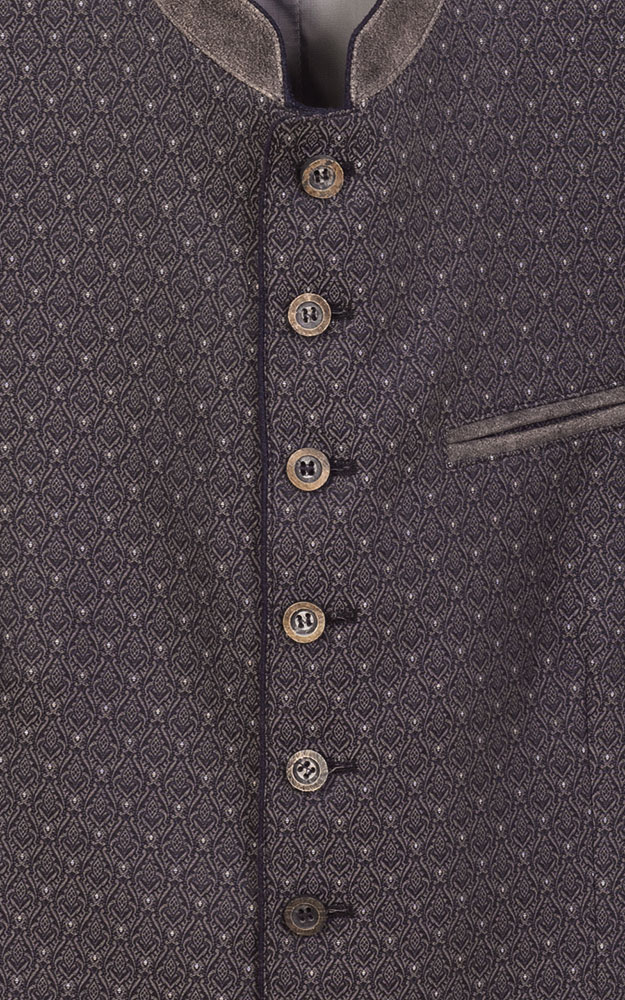 - Kragen und Taschenkanten abgesetzt. Der Kragen ist nochmals paspeliert