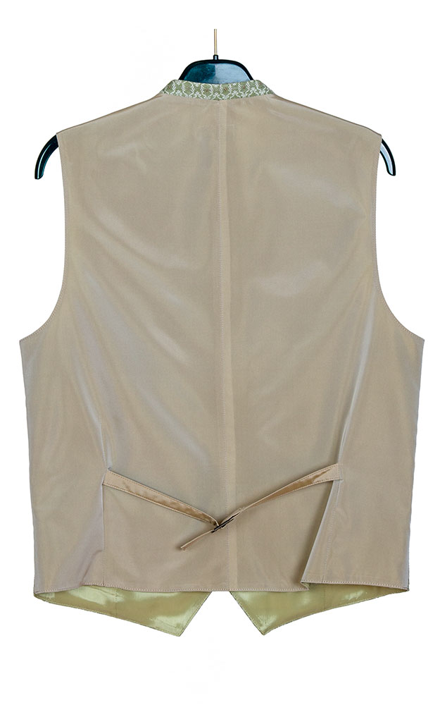 Elegante Weste mit kleinem V-Ausschnitt, Stehkragen und elastischem, schwarzem Stoffrücken.Weitere abgebildete Artikel sind nicht im Preis enthalten.
